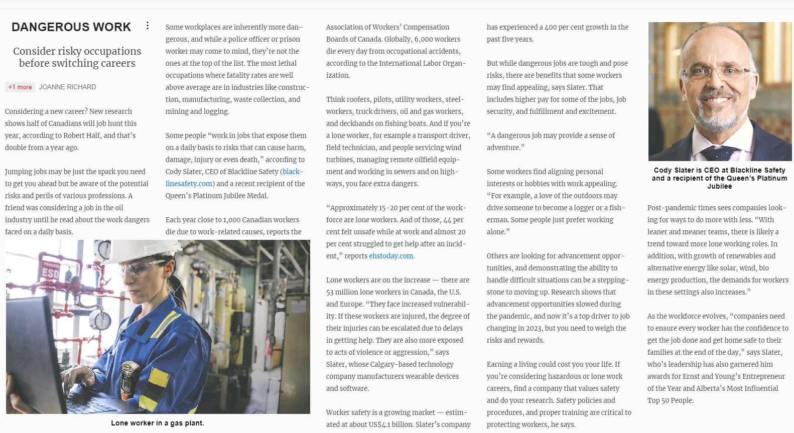 Blackline Safety nomeada uma das empresas com maior crescimento do Canadá no ranking de 2021 do Globe & Mail